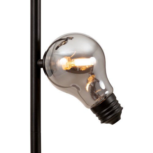 Металлическая арматура, цвета — чёрный и латунь. Прозрачные плафоны-лампочки из стекла в тон арматуры хаотично “разбросаны” по острову светильника. Подвесы регулируются по высоте. Источник света — лампа с цоколем G9...