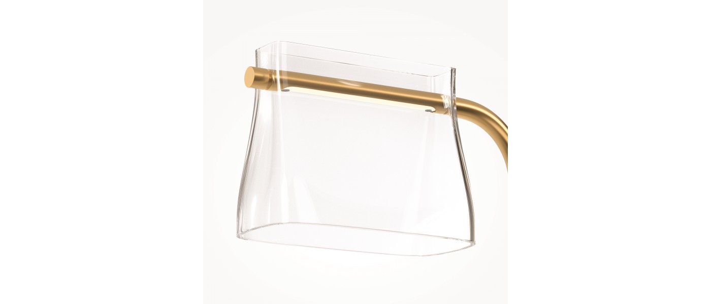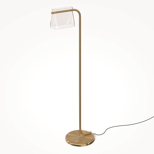 Арматура из металла, цвет - латунь с сатиновым финишем. Плафон из рифленого прозрачного стекла. LED-источник света. Теплая цветовая температура 3000К. Регулируемый по длине провод 3 метра у подвесного светильника. Подходит для помещений с высокими потолками. Торшер с push-кнопкой на проводе для удоб..