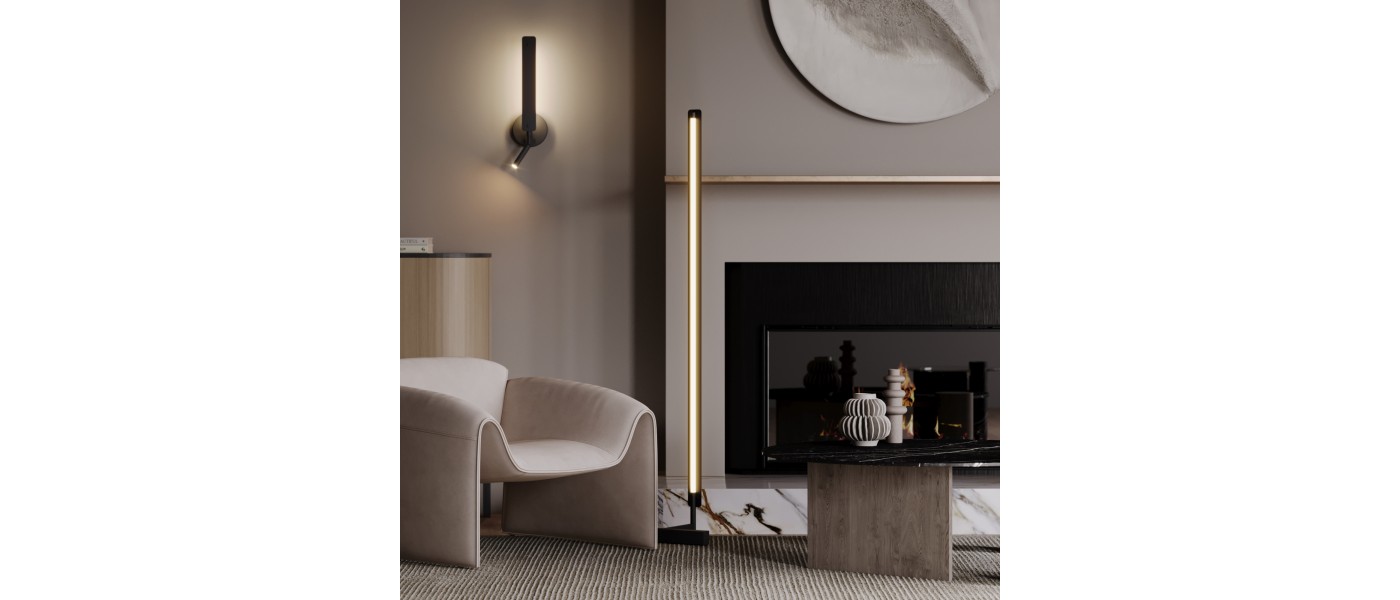 Функциональную серию Combo составляют настенные светильники и торшеры в монохромных цветах (черный, белый). Два источника света бра: поворотный спот для направленного света и лента для переотраженного от стены. Температура света ленты и торшера может регулироваться от 3000K до 6000K с помощью кнопки..