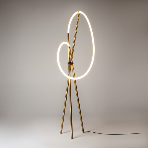 Торшеры с металлическим основанием и минималистичным дизайном. Два цвета арматуры — черный с антибликовым-эффектом сэнди и сатинированная латунь. Материал арматуры — металл. Оригинальный дизайн, вдохновленный древним искусством вязания. LED-источник света в гибком силиконовом рассеивателе. Цветовая ..