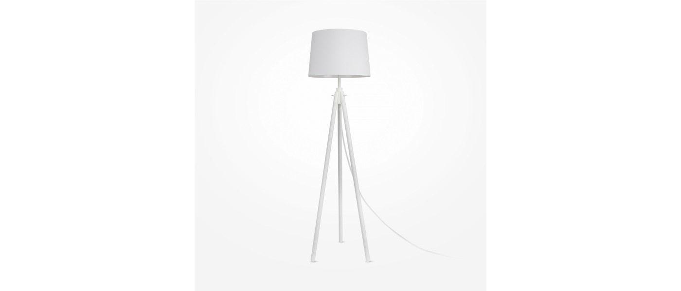 Торшер на треноге. Материал основания – дерево и металл. Декоративные бараш ковые винты. Абажур из хлопка, нанесенного на ПВХ, цвета – бежевый, черный, белый. Источник света - лампа с цоколем Е27.
