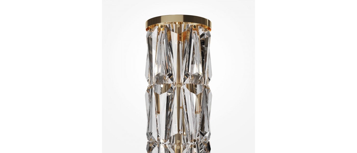 Материал арматуры – металл, оттенки – хром и золото. Декор – массивные крис таллы сложной огранки. Высота подвесных моделей регулируется длиной цепи. Источник света - лампа с цоколем Е14...