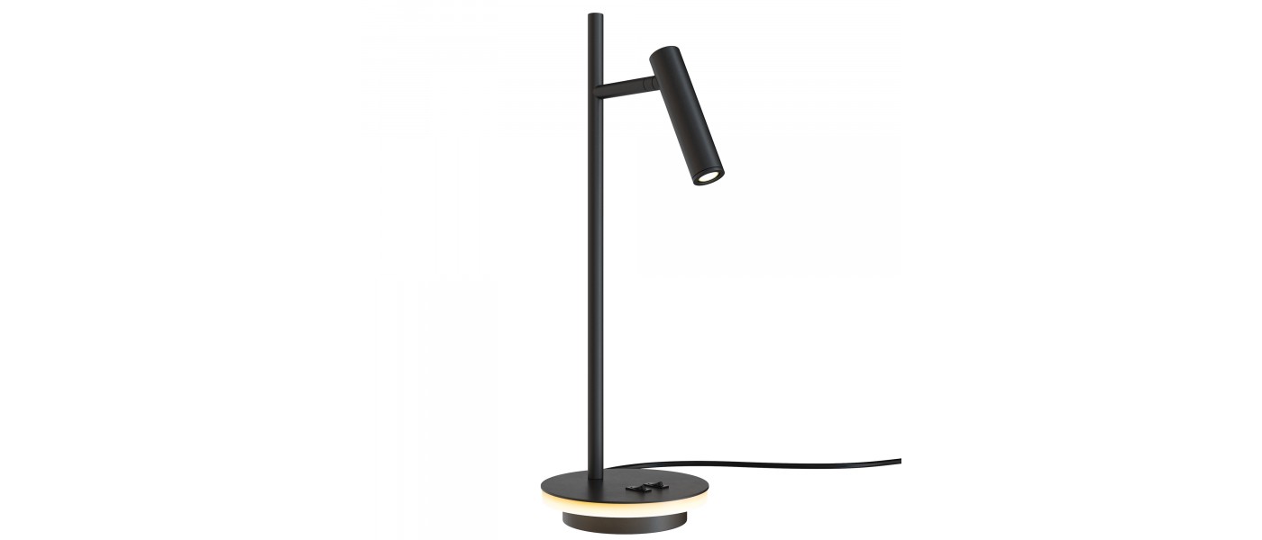 Металлический корпус в черном и белом оттенках. Вращающийся плафон-цилиндр позволяет регулировать направление светового потока. Декоративная подсветка основания. LED источник света, цветовая температура 3000К...