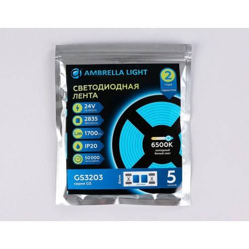 Светодиодная лента Ambrella Light 14,4W/m 180LED/m 2835SMD холодный белый 5M GS3203
