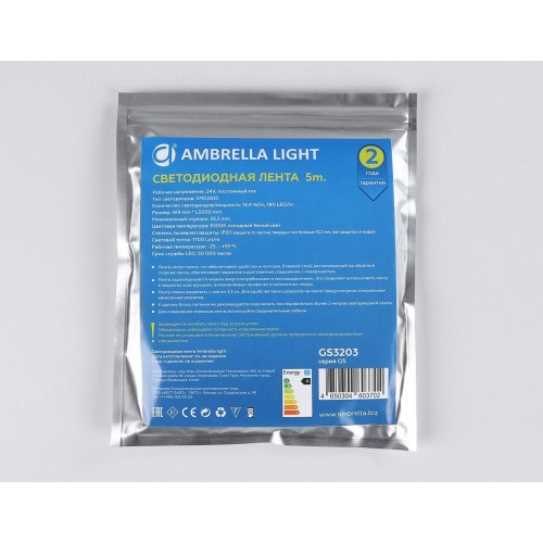 Светодиодная лента Ambrella Light 14,4W/m 60LED/m 5050SMD холодный белый 5M GS4003