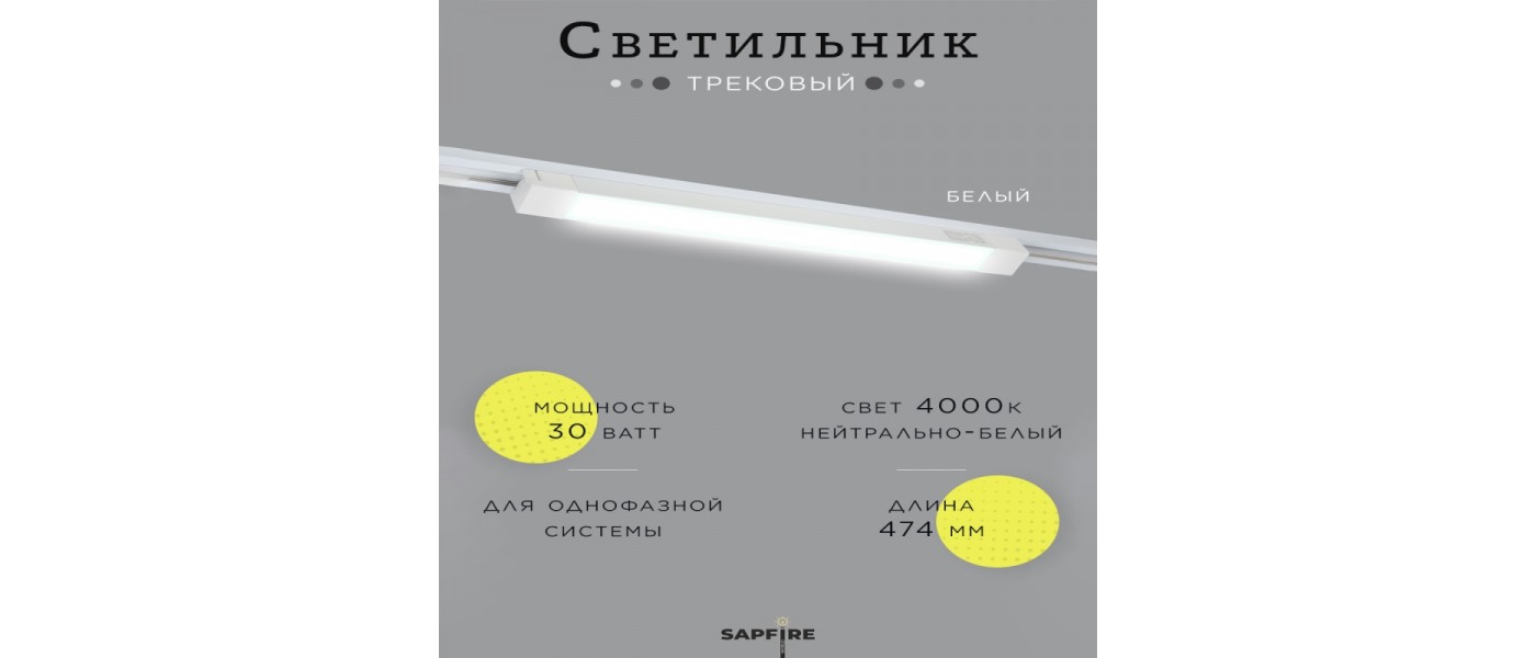Светильник трековый SAPFIR SPF-5932 WHITE/БЕЛЫЙ D22*45/H300/1/LED/12W/4000K DENKORS 22-07