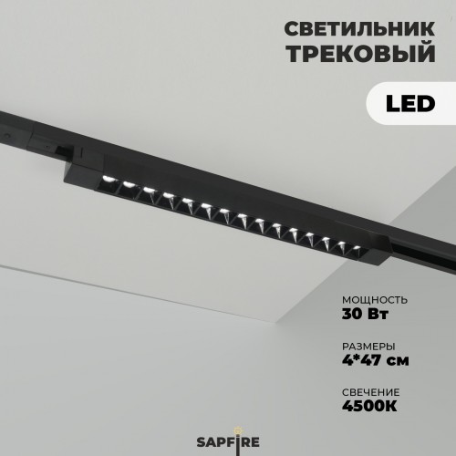 Светильник трековый SAPFIR SPF-5930 BLACK/ЧЕРНЫЙ D22*45/H300/1/LED/12W/4000K DENKORS 22-07